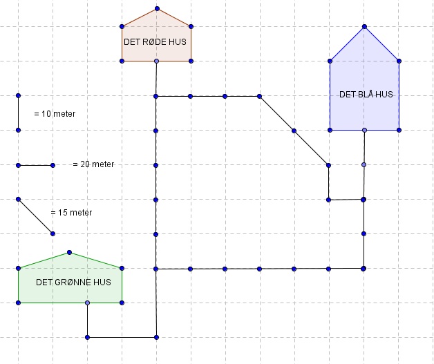 5.1 ) Hvor langt er der fra DET RØDE HUS til DET GRØNNE HUS ?