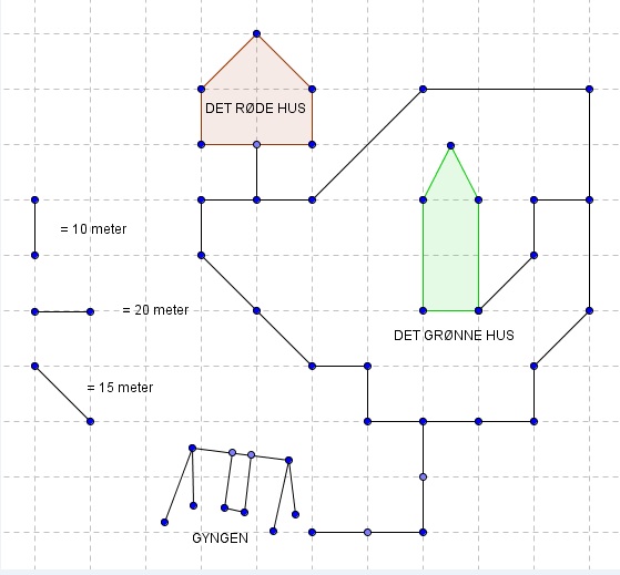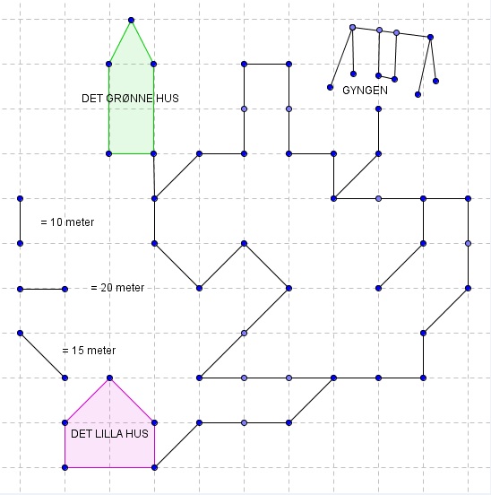 5.2 ) Hvor langt er der fra DET GRØNNE HUS til GYNGEN ?